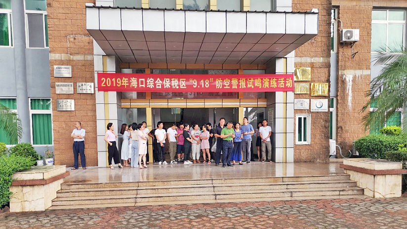 為增強駐區企業員工的國防觀念和防空意識,了解和識別防空警報信號,掌握防空襲疏散隱蔽知識,海口綜合保稅區聯合我司開展“九一八”防空警報試鳴演練活動。此次活動由綜保區統一指揮,我司負責具體實施,社事局局長黎晨主持,財政局局長王振武、園管局局長馬慶禮、原紀檢監察室主任李軍、社事局副局長李建玲、經發局副局長歐文、綜保倉儲物流公司、保安部、市中醫院等領導及相關部門負責人參加觀摩演練。