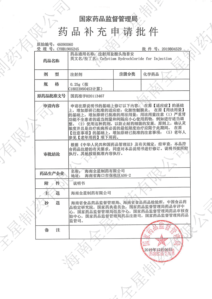 經(jīng)過公司研發(fā)團(tuán)隊長期循證醫(yī)學(xué)研究,并結(jié)合上市原研藥品使用說明書,我公司向國家藥品監(jiān)督管理局提交的注射用奧美拉唑鈉、注射用鹽酸頭孢替安(4種規(guī)格)和注射用頭孢呋辛鈉(3種規(guī)格)適應(yīng)癥的補(bǔ)充申請近日獲得批準(zhǔn),新核準(zhǔn)的藥品使用說明書拓展了臨時用藥范圍,用法用量描述更詳細(xì)更為安全,提供了更加嚴(yán)謹(jǐn)?shù)挠盟幰罁?jù),有助于臨床醫(yī)生在一線工作中制定出更準(zhǔn)確、更有效、更有針對性的治療方案。今后,公司將繼續(xù)提高研發(fā)力量,加強(qiáng)技術(shù)生產(chǎn)工藝,嚴(yán)把質(zhì)量關(guān)口,為市場提供更多高品質(zhì)、高標(biāo)準(zhǔn)的優(yōu)質(zhì)產(chǎn)品,為2030年健康夢中國夢添磚加瓦,獻(xiàn)上我司的一份努力。