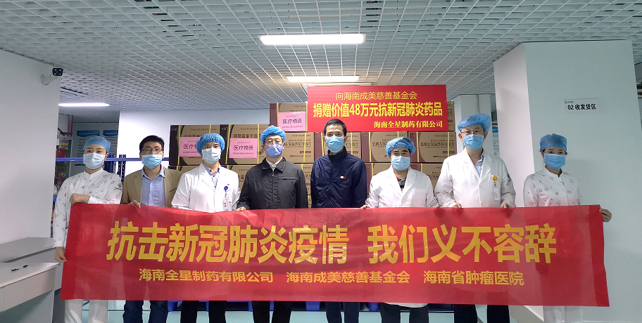 在全省上下疫情防控關(guān)鍵時期,海南全星制藥有限公司始終不忘履行社會責(zé)任,繼2月5日向海口市紅十字會捐贈107萬元的抗疫藥品后,全星再行動,2月7日,向海南成美慈善基金會捐贈價值48萬元的抗疫藥品,用于支持海南省腫瘤專科醫(yī)療聯(lián)合體下轄110多家醫(yī)療機構(gòu)開展一線疫情防控工作,助力我省早日打贏疫情防控攻堅戰(zhàn)。