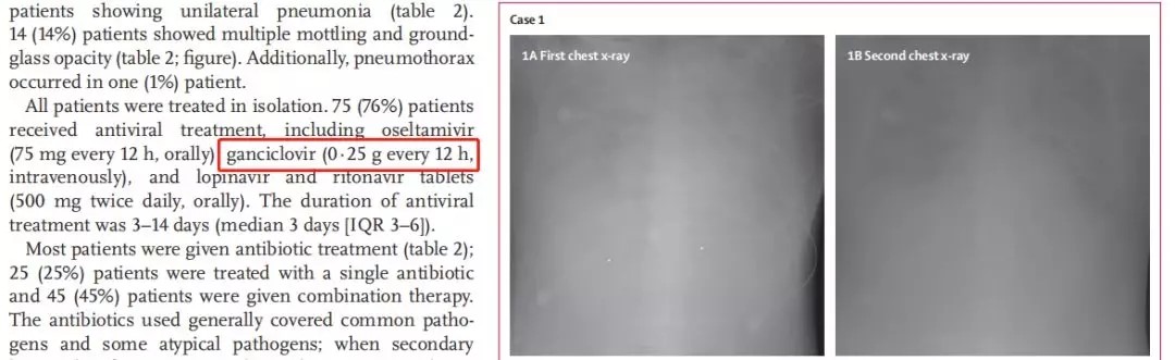 武漢同濟醫院專家在《Radiology》上發表的研究提到,1名42歲的患者在2020年1月1日住院,在此期間接受更昔洛韋、奧司他韋以及其他抗菌藥物治療,最終于2020年1月25日治愈出院。